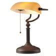 Matted Orange Glass Banker Tablolampo kun Tirĉena Ŝaltilo, Enŝaltu